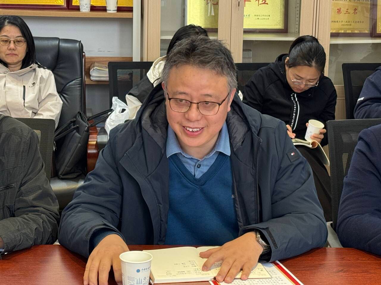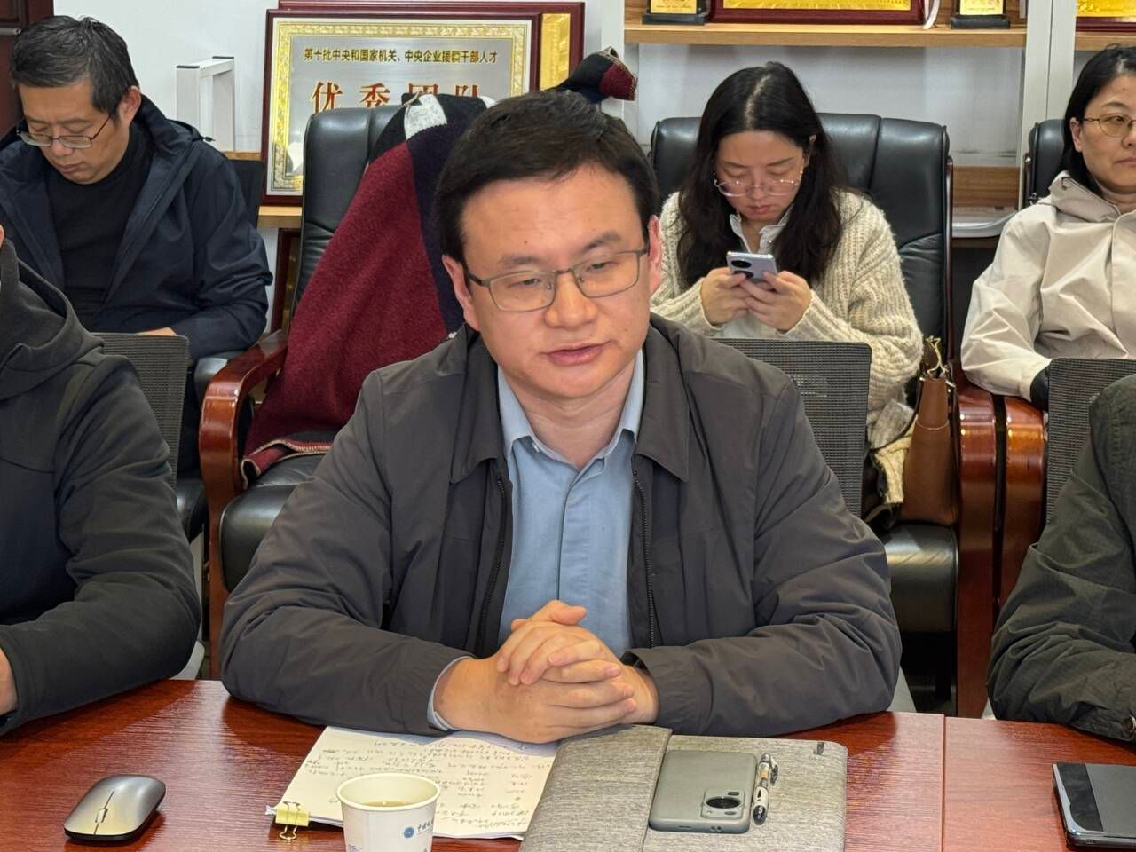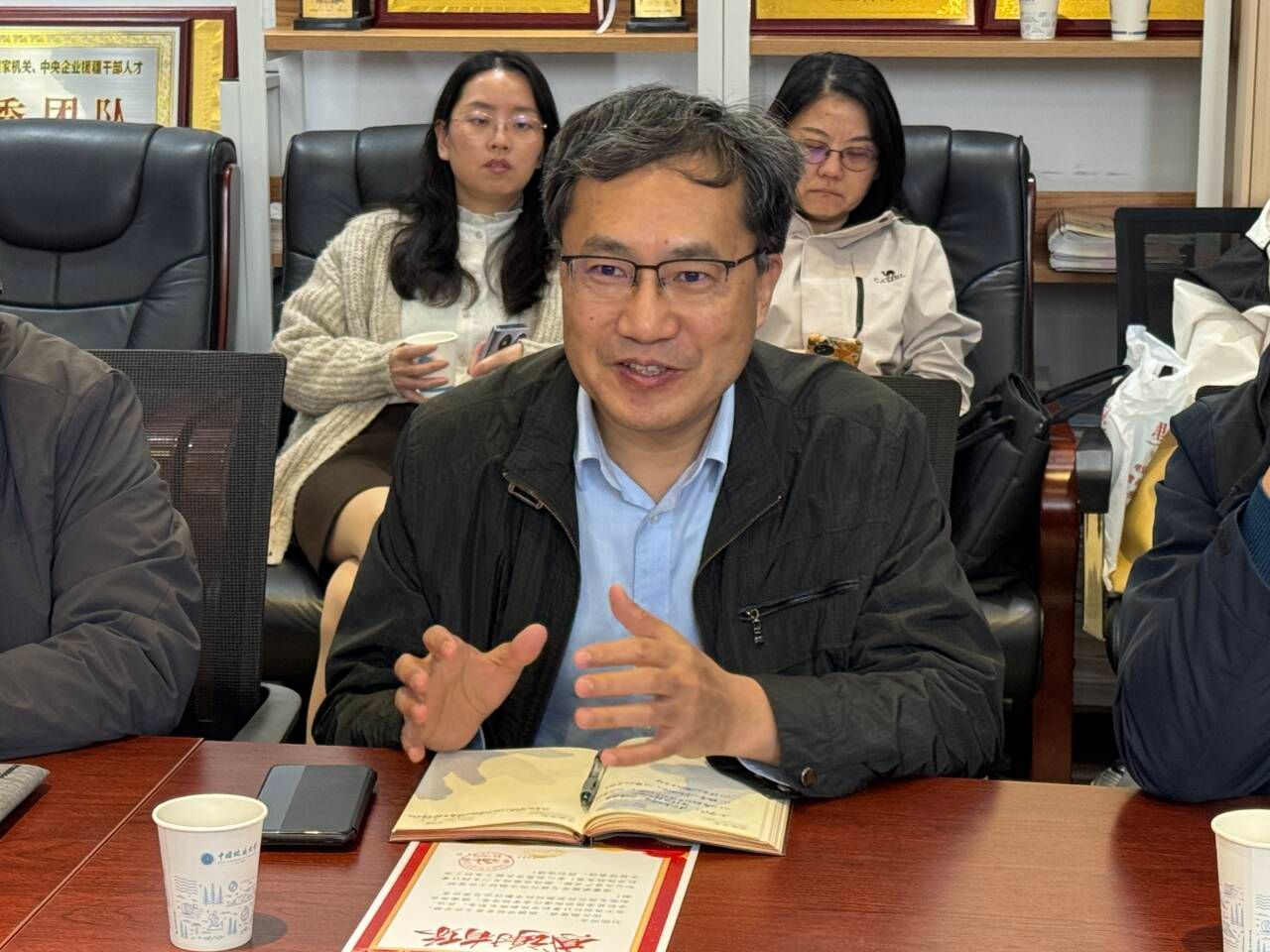 胡成玉同志作离任发言。他感谢公司和公司的培养,感谢一起奋斗的同志。他表示,近年来,公司科研实力和学术水平明显提升,作为公司高速发展的见证者、参与者和推动者,感到十分自豪与光荣。最后祝愿公司学科发展越来越好。