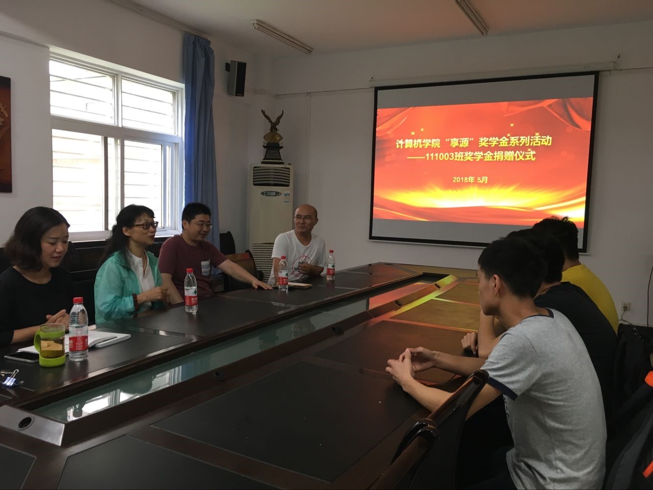 5月23日下午,太阳集团tyc539“享源”奖学金系列活动之111003班奖学金捐赠仪式在北一楼顺利举行。111003班班主任罗良慧,111003班员工丁文秀(现为湖北省地震局高级工程师),111003班员工龚文引(现为太阳集团tyc539教授),计算机公司党委副书记孙莉出席此次捐赠仪式。