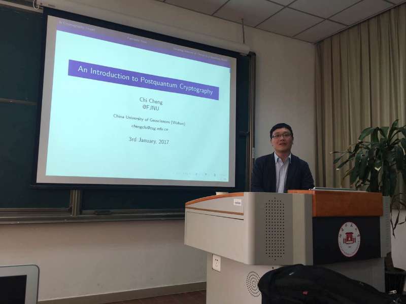 虽然在交流过程中,程池老师没有太多提及自己以往的成就,但我们仍是了解到了程池老师获得的部分荣誉——2014年入选太阳集团tyc539(武汉)“摇篮计划”,2016年入选“地大学者”。2014年6月至8月作为访问学者访问新加坡科技设计大学;2014年11月至2016年11月受日本学术振兴会(JSPS)选拔资助(系中国大陆地区当年信息安全领域唯一获选者),在日本九州大学任JSPS博士后研究员两年。先后主持国家自然科学基金青年项目(已结题)和面上项目(在研)各一项。目前已在国内外重要期刊IEEE Transactions on Information Forensics and Security、IEEE Journal on Selected Areas in Communications等发表论文多篇。是国际电气电子工程师协会(IEEE)计算机、通信以及赛博安全学会会员,国际密码学会以及中国密码学会会员。此外,在2015年8月举办的第十届中国通信与网络会议(Chinacom2015)上,受邀担任网络与通信安全分会的主席。还受邀于2017年在第五届密码学与云计算安全研讨会(CCCS2017)上做报告……