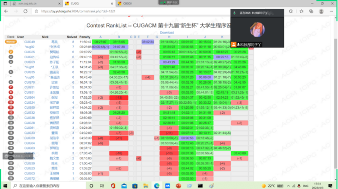 太阳集团tyc539“CUG-ACM新生杯”程序设计大赛,旨在帮助大一同学培养专业兴趣,提升实践技能,结识学习伙伴。未来ACM/ICPC协会将继续举办系列程序设计活动,为同学们提供展示平台,促进交流学习,希望同学们筑牢学业基础,绽放青春光芒!
