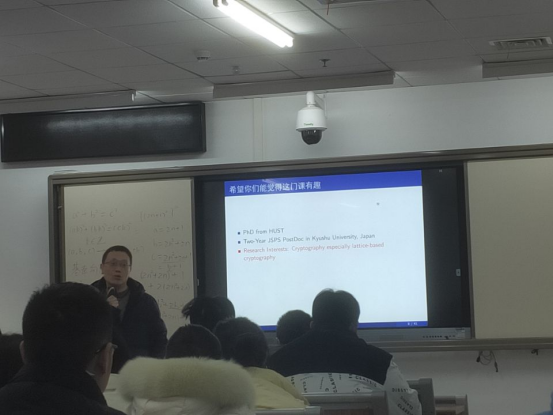 程池老师在开讲前贴心地为员工准备了纸和笔,引导员工养成良好的习惯,手脑并用。在讲授“信息安全数学基础”的勾股数部分时,他不断设定问题、抽丝剥茧,循循善诱,引导员工除了掌握基础知识,还要学会”怎样解决一个小问题”;通过讲授密码学特别是最近新一代抗量子密码学的进展,结合自己带领大三员工在行业顶会发表论文的经历,教育员工“志当存高远”,当“取法乎上,得乎其中”,切忌“随便搞搞就算了”。程老师始终面带微笑,但提问犀利,连续多个“为什么”,让课堂气氛略显“紧张”,不断将员工“逼”向思考的深处。