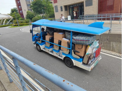 一切都在有条不紊地进行,人心也和季节一样浮泛着温度。三批车队安全接送,志愿者们热心协调。许多男生主动帮助女生搬运行李,搬迁停车的每个位点也都有老师在认真负责协调指挥。