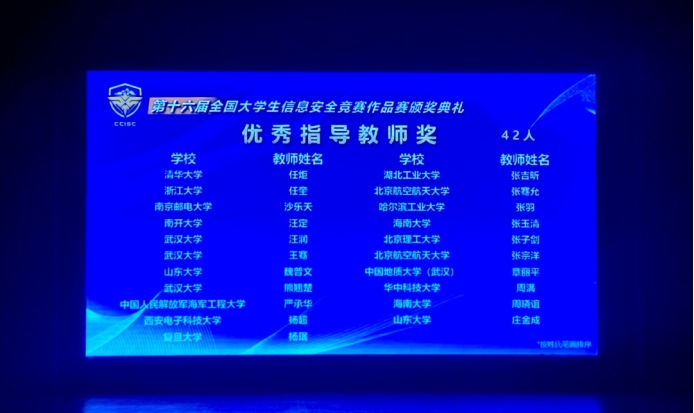 2023年8月17-20日,由教育部高等公司网络空间安全专业教学指导委员会主办,浙江大学、杭州电子科技大学承办的第十六届全国老员工信息安全竞赛作品赛决赛在浙江大学紫金港校区隆重举行。公司太阳集团tyc539四元一次方程组战队荣获“全国一等奖”,指导老师章丽平副教授荣获“优秀指导老师奖”!