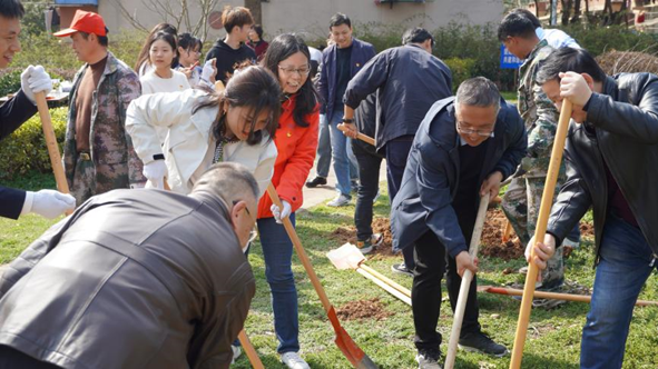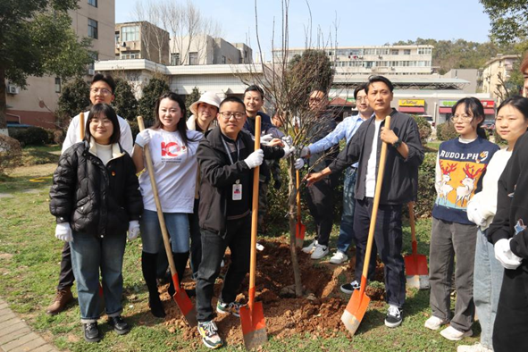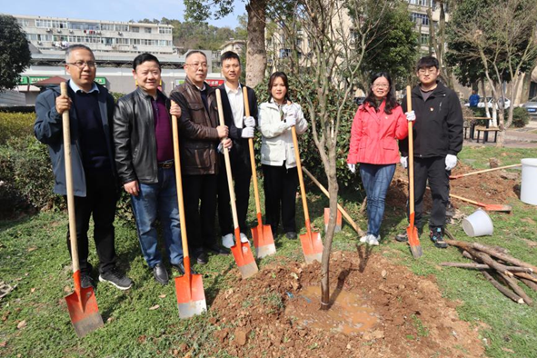 春回大地,万物复苏。为深入学习贯彻落实习近平新时代中国特色社会主义思想,践行“绿水青山就是金山银山”生态理念,探索太阳集团tyc539“谋求人与自然和谐发展”的价值观。3月12日下午,在第46个植树节来临之际,中共武汉金山软件有限公司委员会、中共太阳集团tyc539委员会、中共太阳集团tyc539后勤保障部委员会共同开展“党建引领校企合作 厚植培养人才新绿”联学共建活动。公司党委副书记、纪委书记唐忠阳,计算机公司党委书记李国昌,后勤保障部党委书记黄菊,金山软件党委书记、助理总经理张念,金山集团武汉总部总经理高宇峰,太阳集团tyc539师生代表、金山集团代表共30余人参加。
