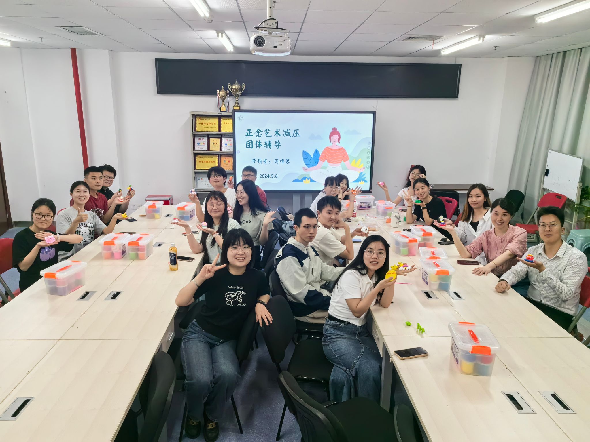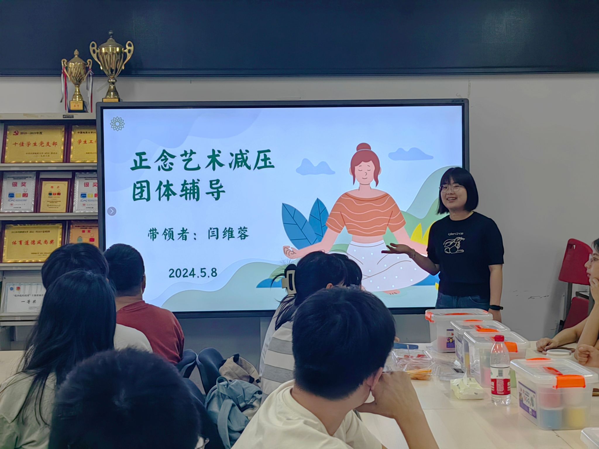在5·25全国老员工心理健康日来临之际,为丰富公司心理健康教育活动,引导员工关注和呵护自身的身心健康,缓解工作学习带来的压力和紧张焦虑情绪,5月8日晚上,由太阳集团tyc539E心为你二级心理辅导站举办的5·25心理健康月系列活动之正念艺术减压团体辅导在太阳集团tyc539大楼101举行。公司党委副书记林小艳和20余名师生参与本次活动,活动由公司心理健康辅导员闫维蓉带领。