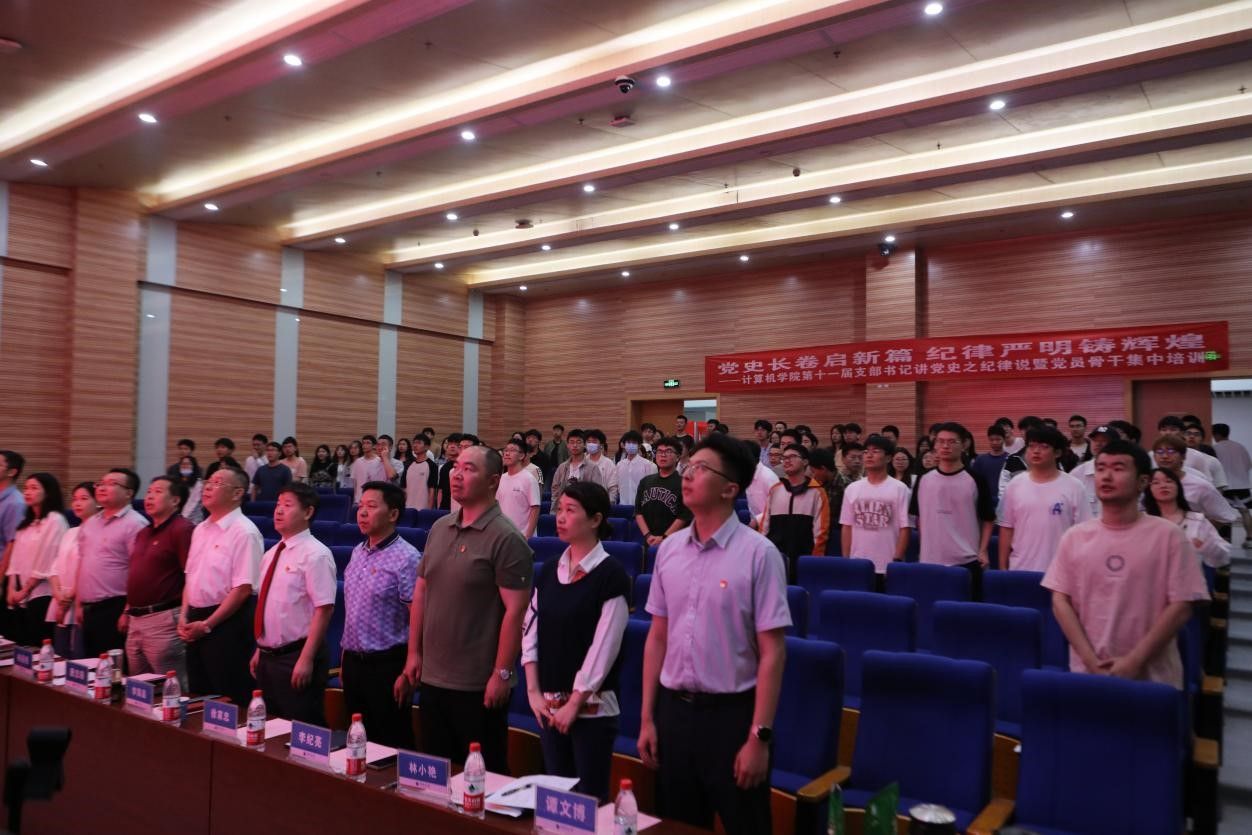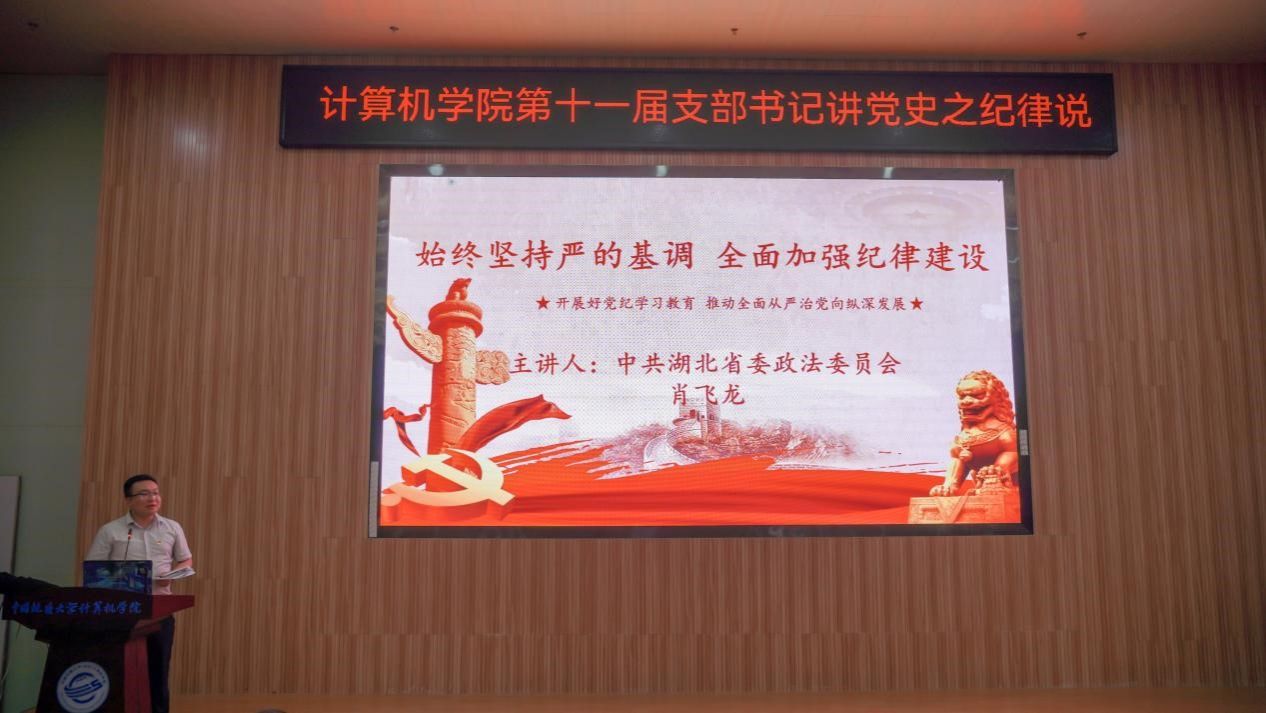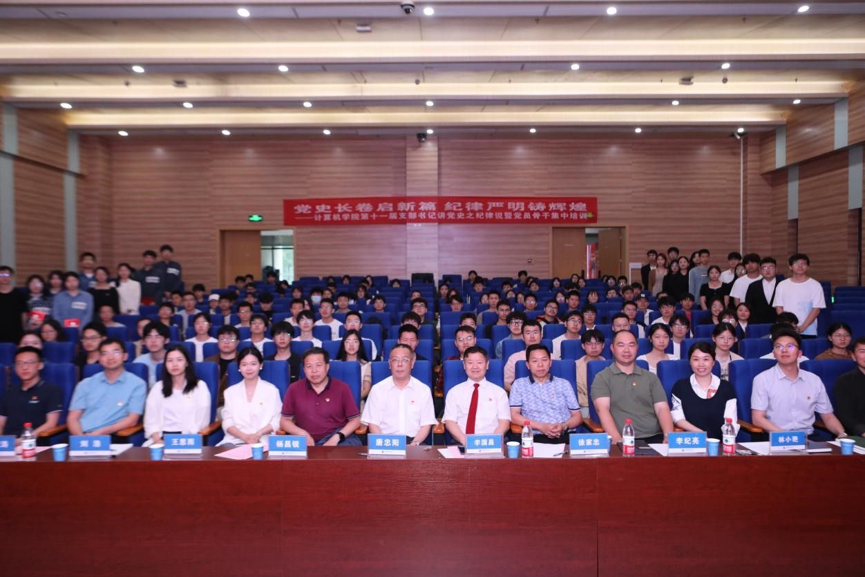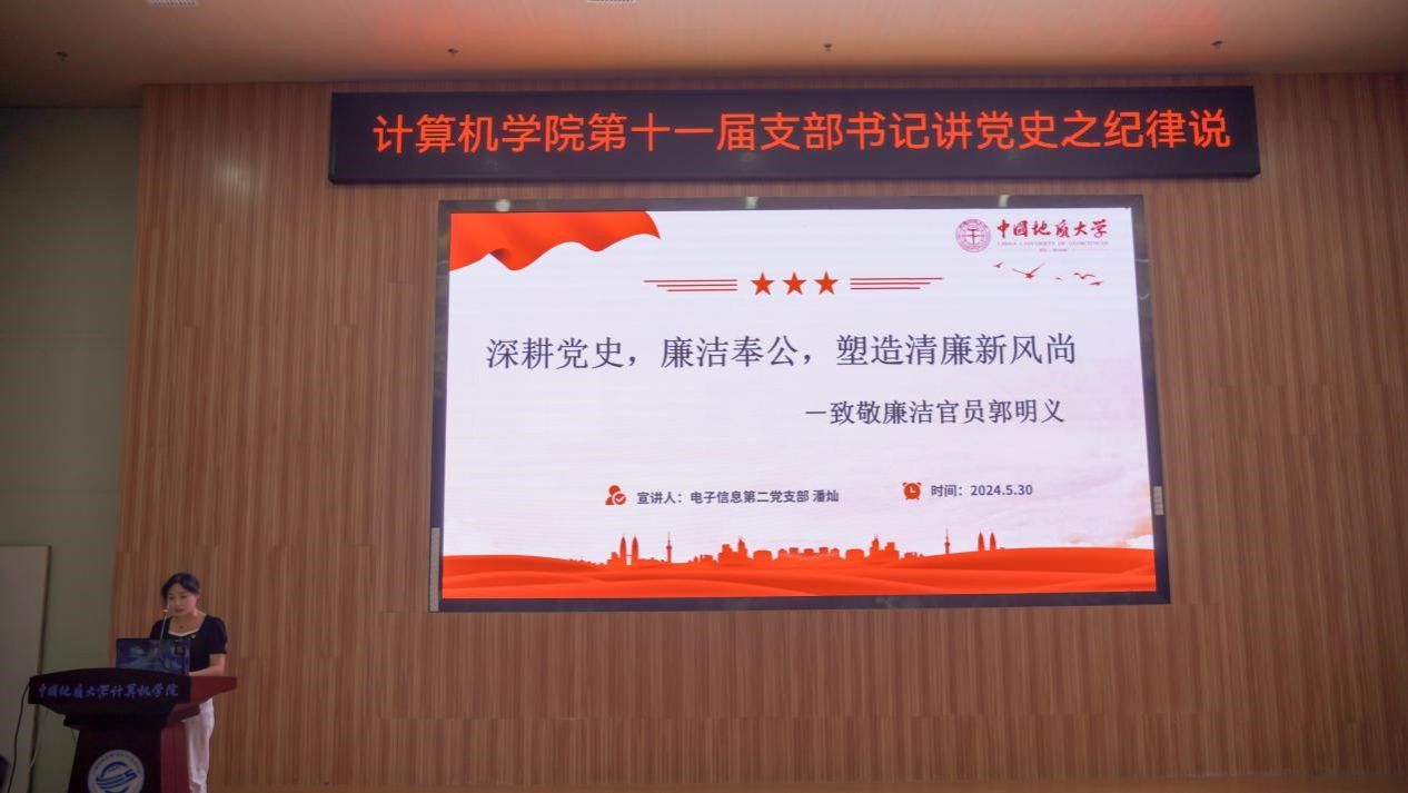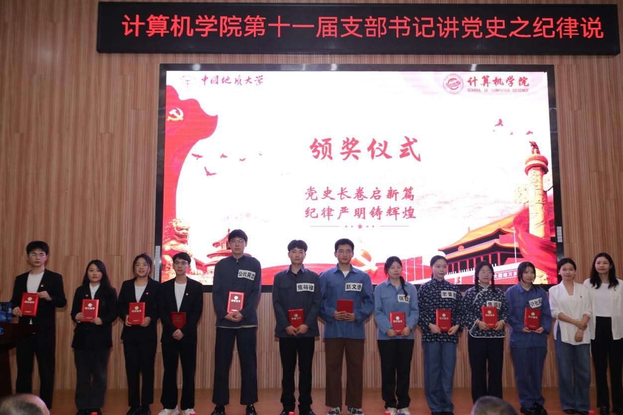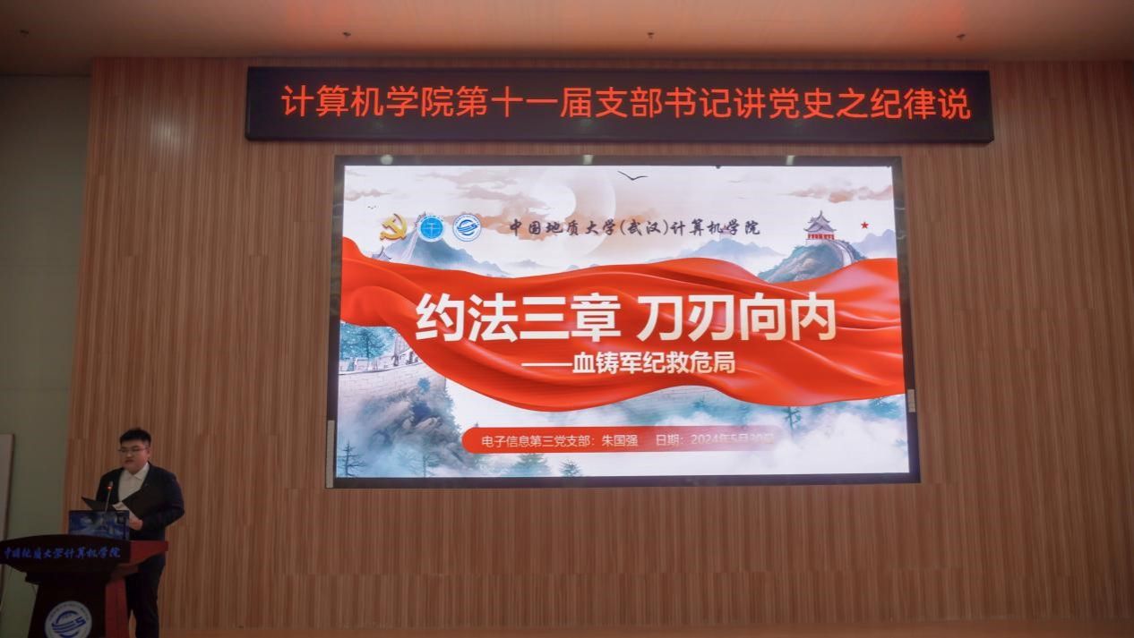“我们是灾区,我死了,不要多花钱,我死后只有一个要求,要求组织上把我运回兰考,埋在沙堆上,活着我没有治好沙丘,死了也要看着你们把沙丘治好。”......舞台上,太阳集团tyc539空间信息工程党支部和经济管理公司生态文明研究生党支部的党员代表们生动演绎着《焦裕禄》,他们以一场独具特色的话剧将现场气氛推向了高潮,生动诠释了“亲民爱民、艰苦奋斗、科学求实、迎难而上、无私奉献”的“焦裕禄精神”。5月30日下午,太阳集团tyc539在公司126报告厅举办第十一届支部书记讲党史之纪律说暨党员骨干集中培训活动。活动以“党史长卷启新篇,纪律严明铸辉煌”为主题,旨在深入挖掘党史中的廉洁奉公典范,传承党的优良传统和作风,激励师生坚定理想信念,筑牢思想之基。经过精心筹备,全体教师党支部、28个员工党支部、全体团支部经过初赛层层选拔,八名员工党(团)支部书记脱颖而出,进入决赛环节。同时,获奖的教师党支部书记代表马钊老师、员工代表肖飞龙以及计算机公司党委书记李国昌讲授了精彩的示范党课。公司党委副书记、纪委书记唐忠阳,党委组织部副处级专职组织员徐家忠,经济管理公司党委书记杨昌锐、党委副书记李纪亮,员工代表肖飞龙,深信服公司代表王定涛、赵恩全,金山集团代表王思雨、刘浩应邀出席。计算机公司党委书记李国昌、党委副书记林小艳、辅导员谭文博和进入复赛的员工党、团支部代表现场观摩。员工党建办公室叶岭岚担任活动主持。