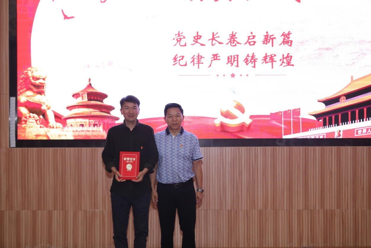 在示范党课环节,马钊老师以《清风徐来,廉洁花开》为题,深入浅出地阐述了廉洁自律的重要性,引导大家从现在做起,从身边小事做起,从遵守考试纪律、坚持推优评奖原则等日常学习工作生活做起,扣好廉洁自律“第一粒纽扣”。员工代表肖飞龙以《始终坚持严的基调 全面加强纪律建设》为题,带领大家深刻学习领悟习近平总书记关于党的自我革命的重要思想。李国昌书记原原本本领学了《中国共产党纪律处分条例》中关于政绩观的修订内容,分享了习近平总书记在延安梁家河、河北正定等地工作期间造福人民的故事,希望青年员工自觉学习党规党纪,切实践行造福人民的政绩观,并在新时代的新征程上不断建立新功。示范党课结束后举行了隆重的颁奖仪式。