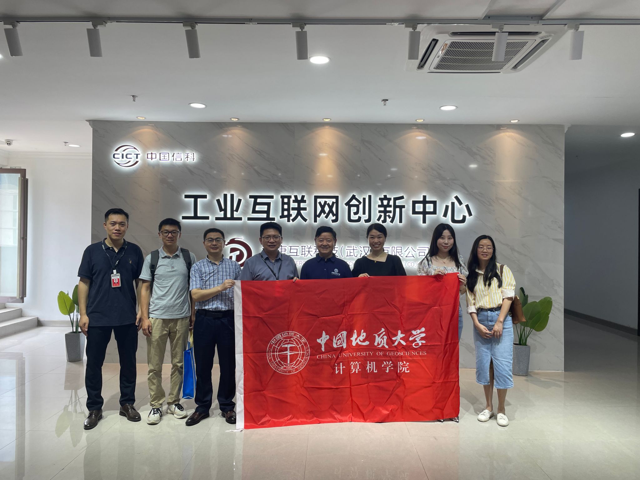 为促进公司实习实训和就业工作,8月2日,计算机公司党委书记李国昌、党委副书记林小艳、公司团委副书记孙琨、人工智能系教师刘袁缘、办公室主任卢笙一行5人,赴大唐互联科技(武汉)有限公司开展工作调研和访企拓岗活动。