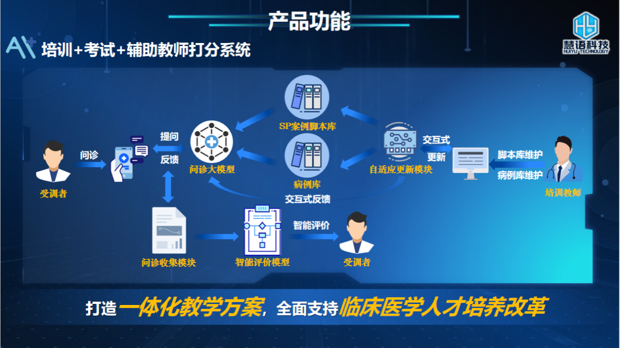 该项目把计算机专业知识与医学问诊相结合,主要目的是提升医生问诊能力。医生问诊能力是一个医生必备的专业技能。培养医员工的问诊技能,需要有病人或模拟病人的配合,一直以来效率低下。针对上述痛点,该项目推出了一个医员工问诊培训的学习软件,根据具体的医学科别,模拟病人,回复医员工的各种问题,完成整个问诊的过程,最后根据医员工在问诊交流中的表现给出得分。该项目背后的医学支撑和技术支撑扎实,具有充分的市场空间和市场需求,盈利潜力巨大,具有重大社会意义和产业前景。