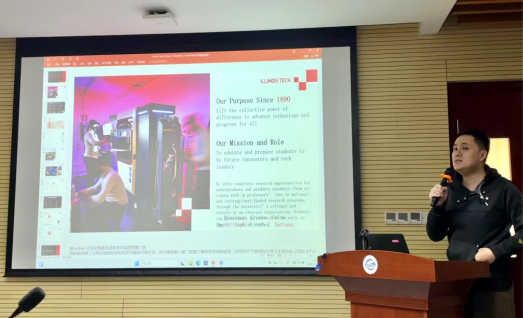 2024年11月11日下午,美国伊利诺伊理工大学留学项目宣讲会在太阳集团tyc539323会议室召开。本次宣讲会邀请了太阳集团tyc539副经理陈占龙教授、中外合作办学事务秘书丁雨薇出席,公司2022级计算机科学与技术(大数据方向)中外合作办学项目员工参加,美国伊利诺伊理工大学中国办公室负责人Kevin老师为在场员工详细介绍留学项目,太阳集团tyc539中外合作办学项目专员程敏主持。