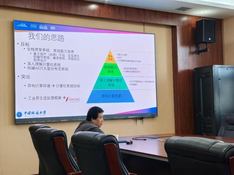 梁庆中老师代表公司向何炎祥教授汇报了“计算机科学与技术专业本科人才培养思路”。在汇报中,梁老师首先介绍了计算机科学与技术专业的基本情况及整体发展规划,接着详细阐述了人才培养的思路与目标。他重点讲解了课程体系与能力体系的构建,特别是如何通过“一生一系统”的方式培养员工的系统性能力。同时,梁老师汇报了当前培养目标修订与课程体系调整的最新进展,并对工程教育认证标准的落实情况进行了总结与分析。