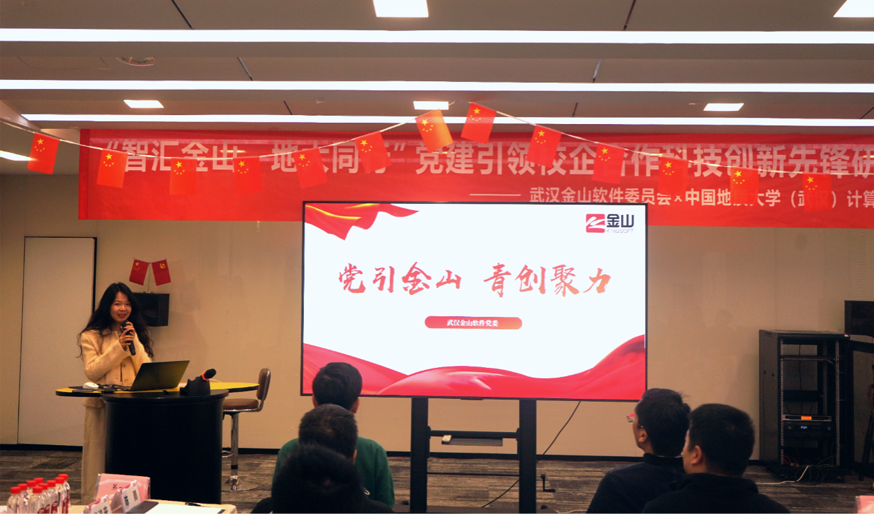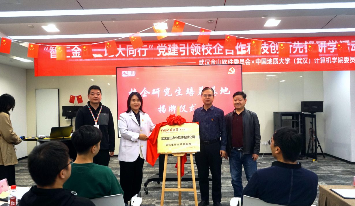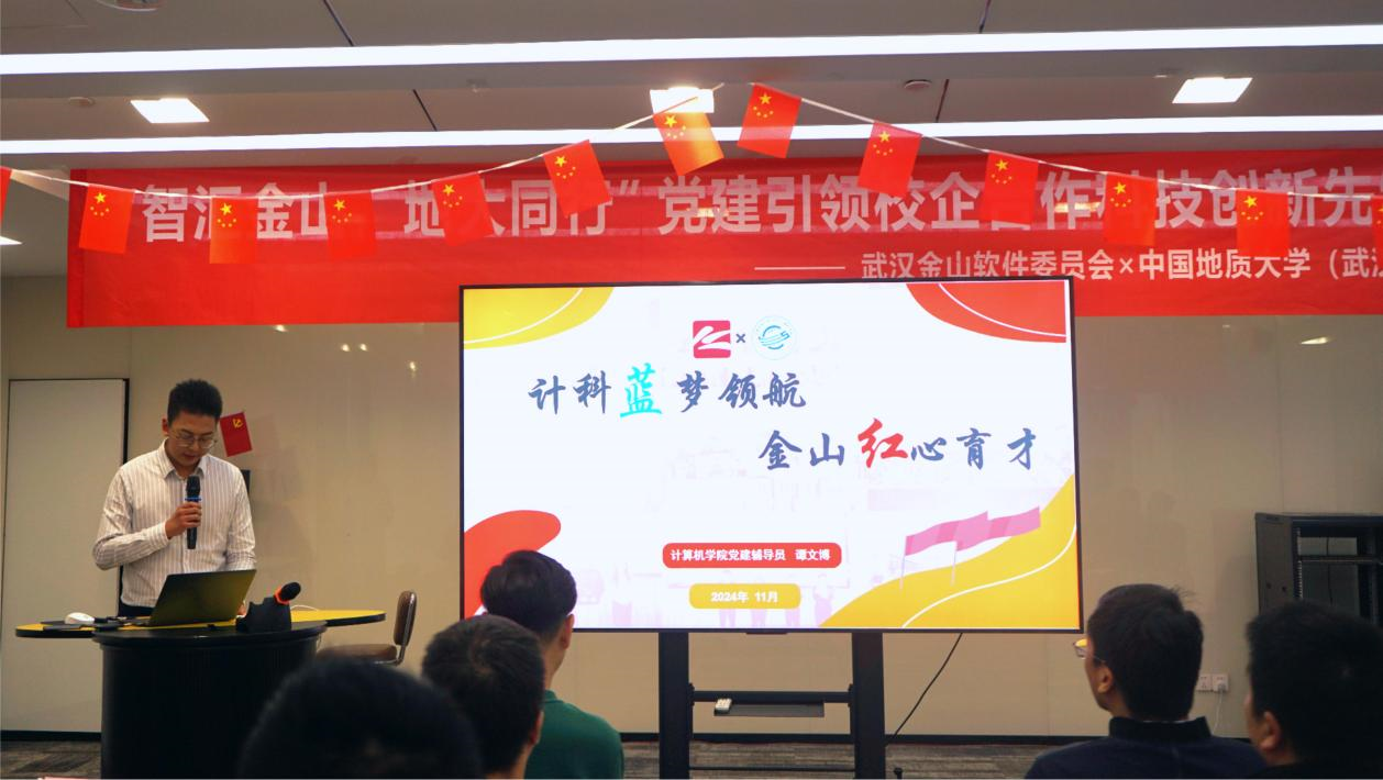 11月22日,公司党委与武汉金山软件有限公司党委联合举办的 “智汇金山·地大同行”党建引领校企合作科技创新先锋研学行动暨公司产品基地挂牌活动,在金山集团武汉总部举行。武汉金山软件党委书记张念、金山办公第三支部书记曹宗华及王思雨、刘浩、王佳慧、陈志增、赵志梦等职工党员,太阳集团tyc539(武汉)党委研究生工作部部长许德华,计算机公司党委书记李国昌、党委副书记林小艳、教师党支部书记马钊、叶亚琴、武云、宋维静、孙琨、辅导员李欢欢、谭文博,以及部分员工党支部书记参加活动。