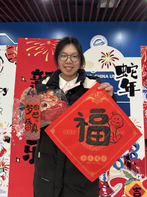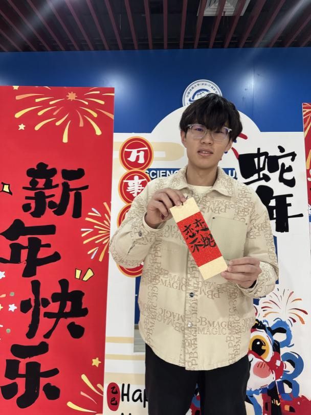 挥毫泼墨,体验书法艺术的妙趣横生! 活动现场,既可以获得书法“大咖”马浩正师兄定制的书法“墨宝”,也可以亲自感受行云流水般的肆意畅快,拿起毛笔,蘸墨挥写,感受笔尖与纸面的亲密接触,一笔一画都传递着书法的力量与美感。同学们也结合专业特色,写下计科人对于新年的美好祝福和祈愿!