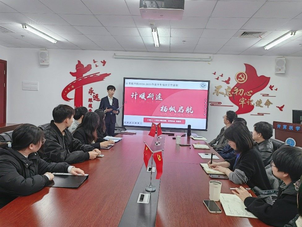 公司团委副书记郭嘉乐以“护航研学”为核心,围绕思想引领、科技创新、服务保障和文化育人四大方面,对研究生团学组织开展的“师说芯语”导学沙龙、信息前沿未来论坛、“最美研学空间”建设、“计科杯”和趣味运动会等特色活动进行汇报。未来将继续以全心全意服务同学为宗旨,打造更加卓越的成长平台。
