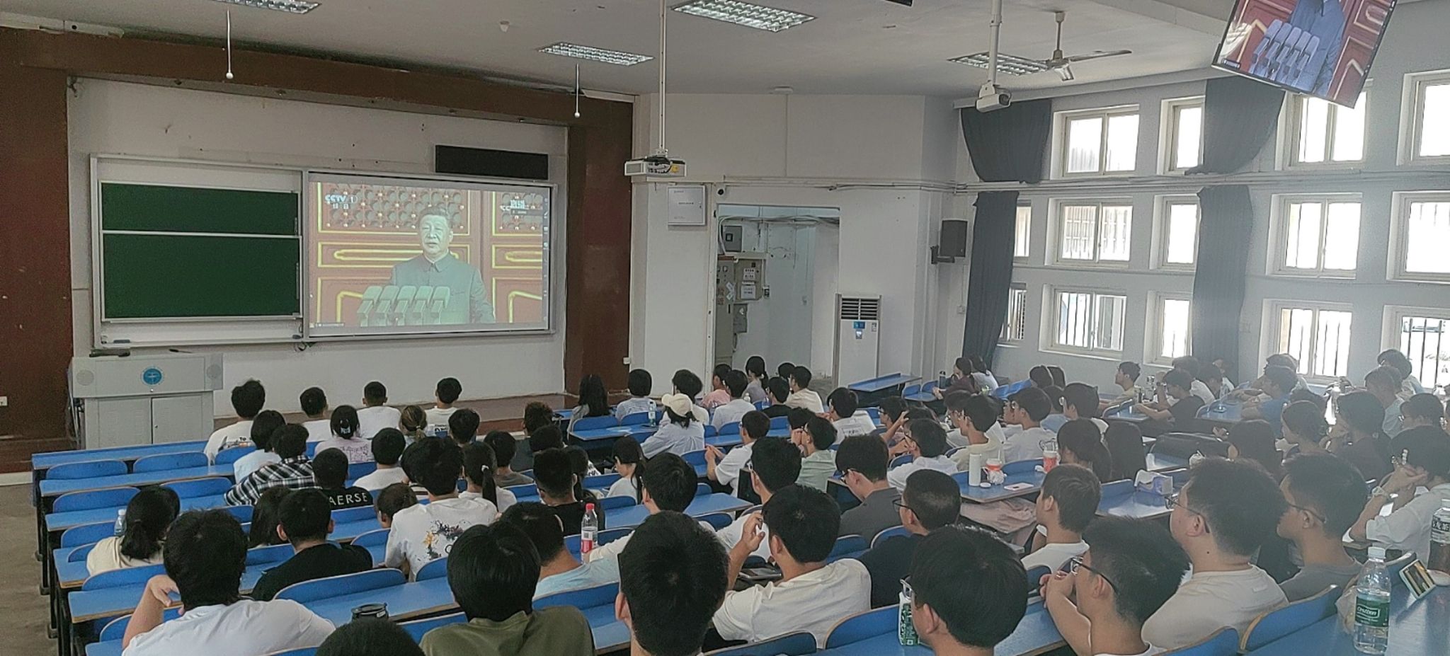 在庄严的氛围中,师生们怀着无比崇敬的心情,通过大屏幕见证了大会的隆重场景。习近平总书记的重要讲话铿锵有力,深刻阐释了伟大抗战精神的历史意义和时代价值,师生反响热烈。