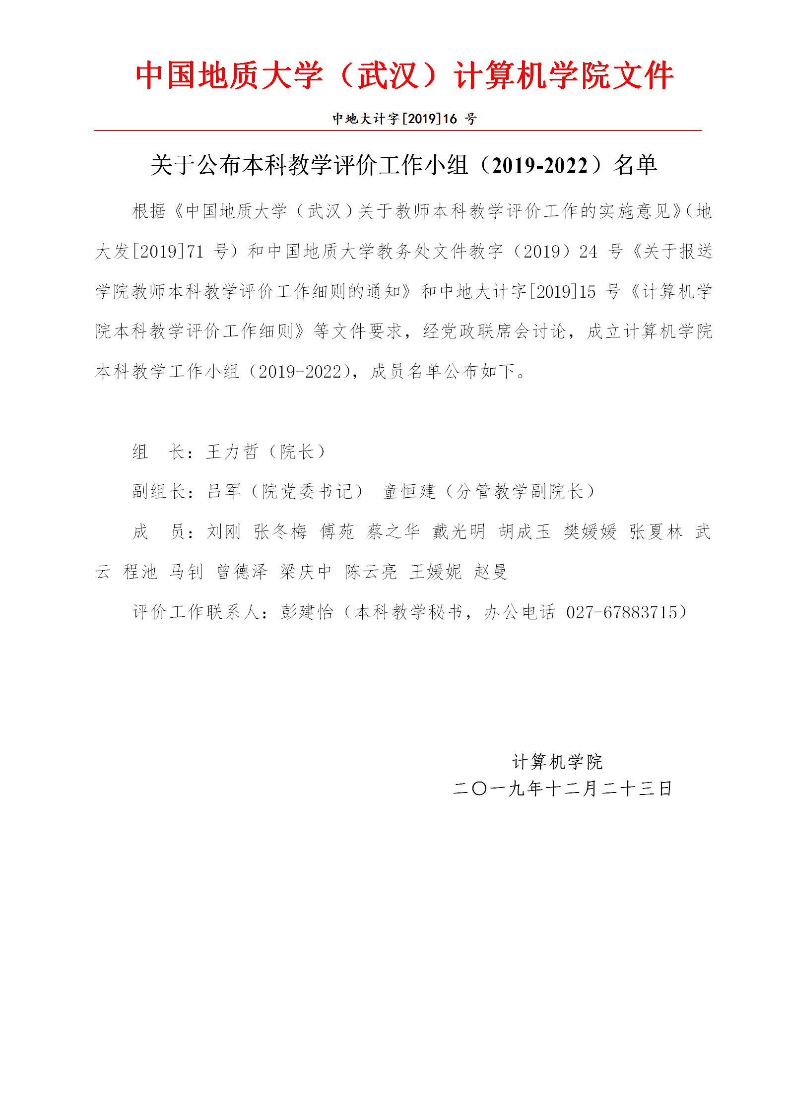太阳集团tyc539关于公布本科教学评价工作小组(2019-2022)名单