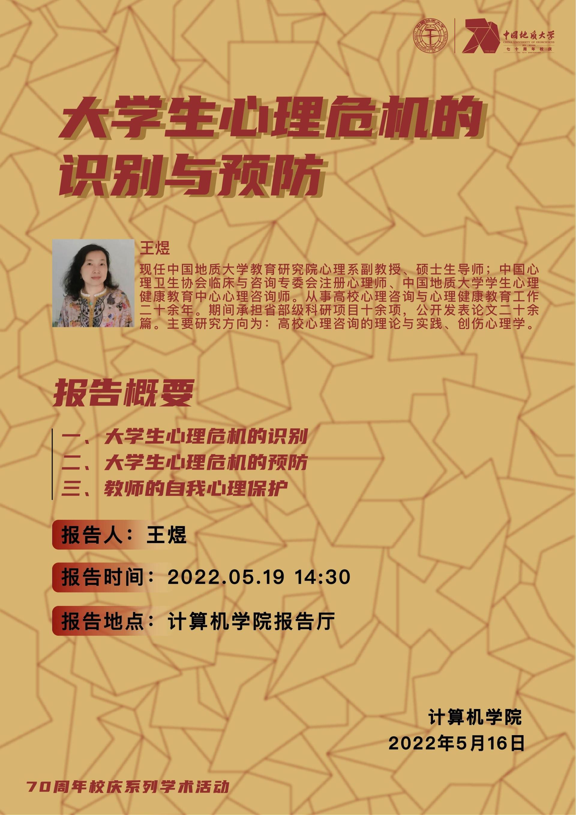 学术讲座——太阳集团tyc539教育研究院心理系副教授王煜:老员工心理危机的识别与预防