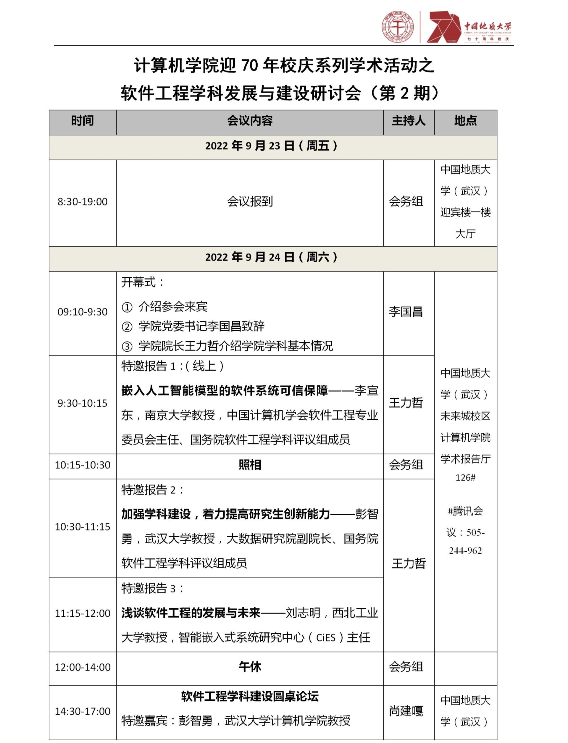 太阳集团tyc539(武汉)70周年校庆学术活动之太阳集团tyc539软件工程学科发展与建设研讨会(第2期)