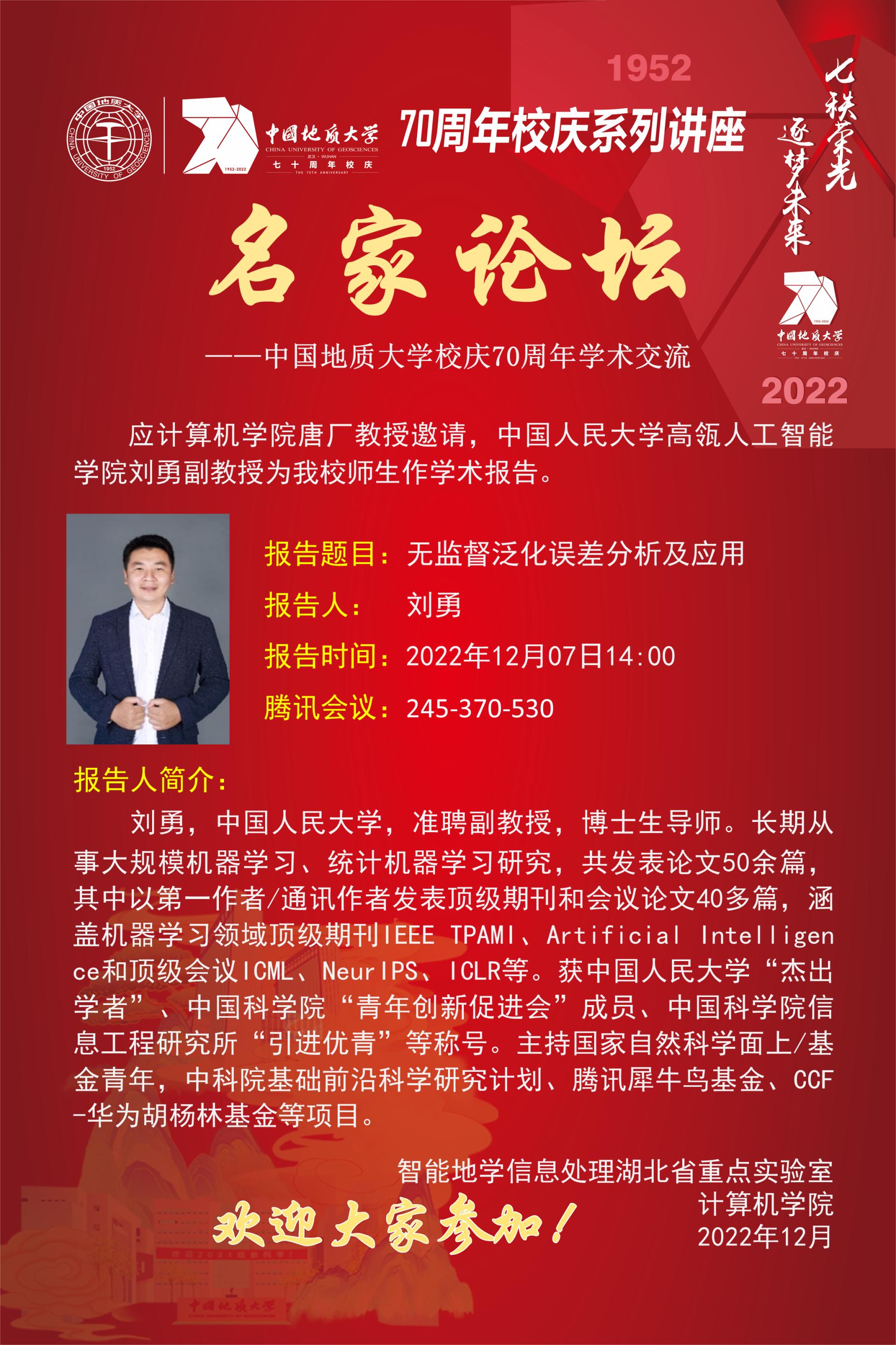 学术讲座——中国人民大学高瓴人工智能公司刘勇:无监督泛华误差分析及应用