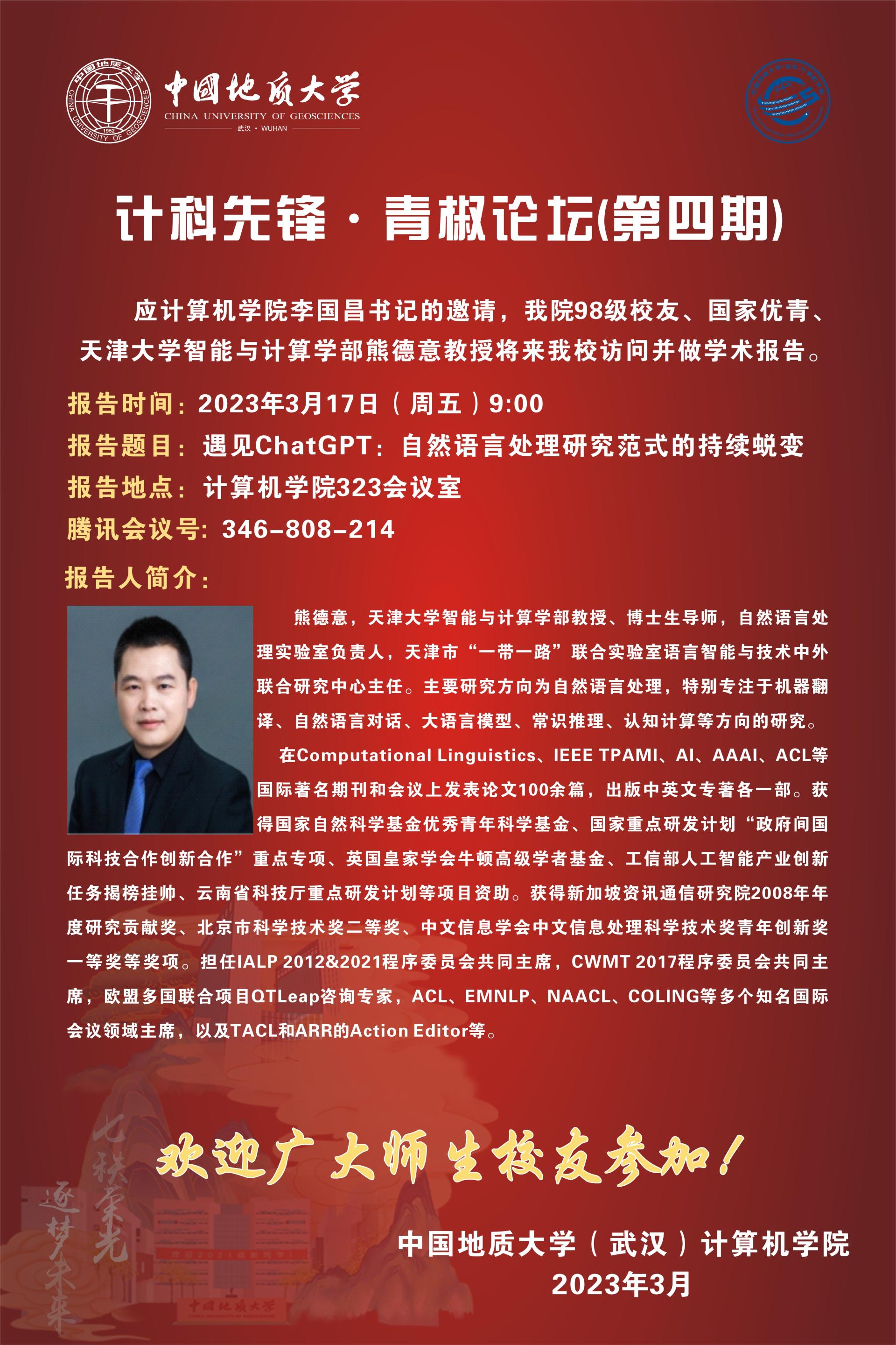 计科先锋青椒论坛(第四期):天津大学熊德意——遇见ChatGPT:自然语言处理研究范式的持续蜕变