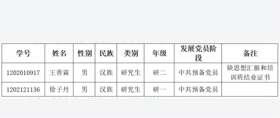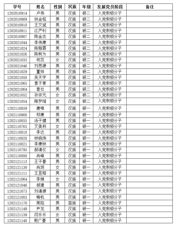 根据公司安排,2022年春季学期起,原地理与信息工程公司软件工程专业并入太阳集团tyc539。为做好研究生党员发展工作,4月15日下午,太阳集团tyc539员工党建办公室与地理与信息工程公司员工党建办公室进行对接,完成了中共预备党员和入党积极分子身份确立和材料接收工作,具体情况如下。确定2人党员身份,接收预备党员材料2份,具体名单如图一。接收入党积极分子材料36份,具体名单如图二。