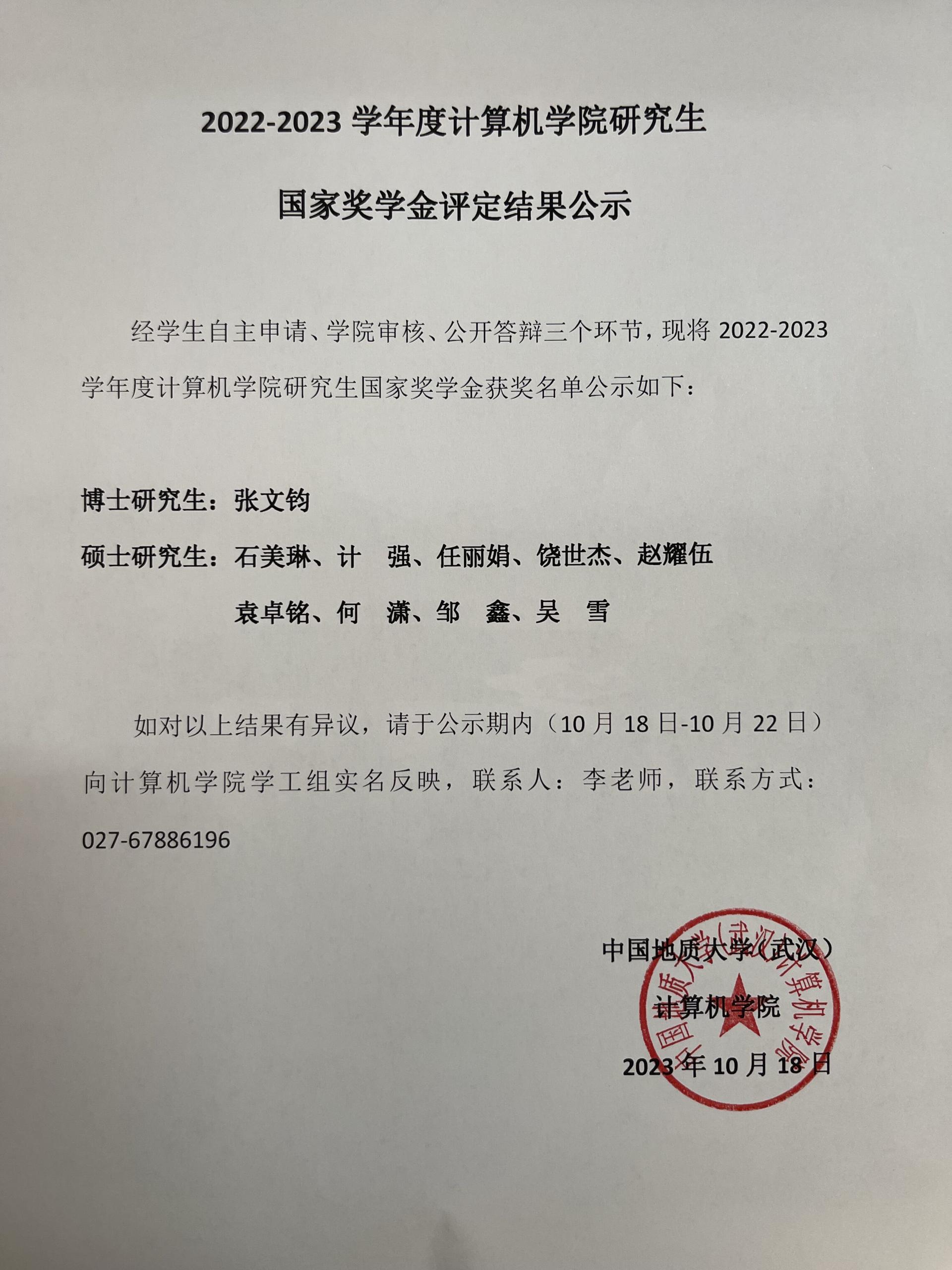 2022-2023学年度太阳集团tyc539研究生国家奖学金结果公示