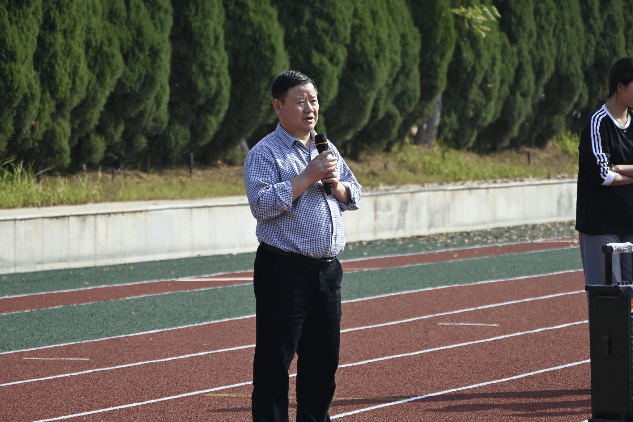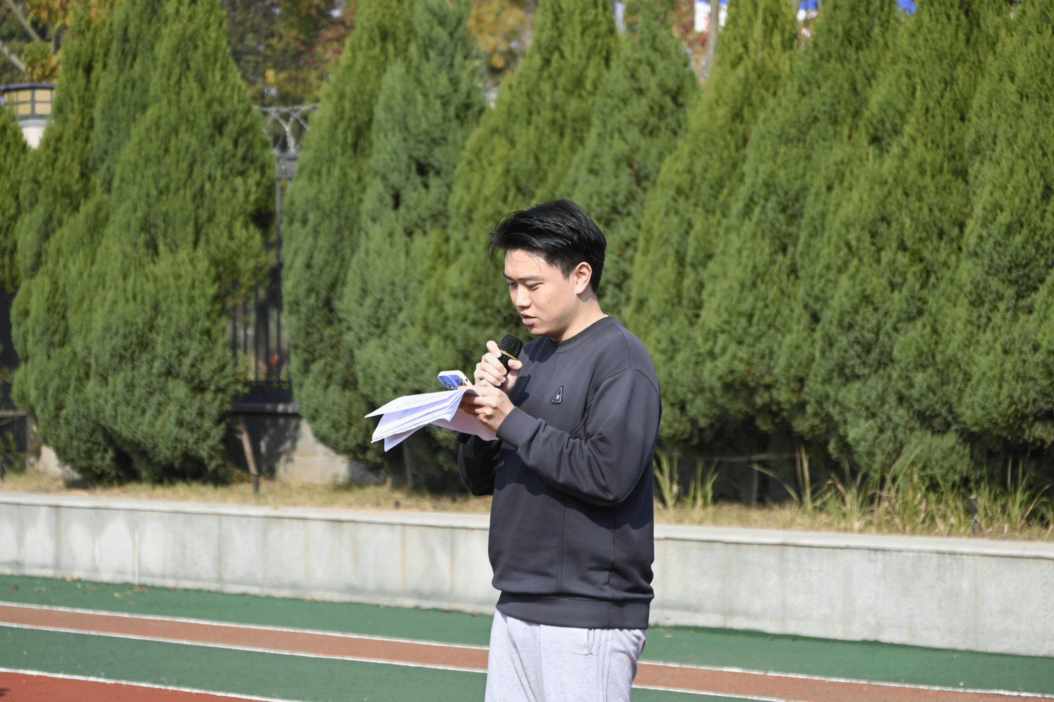 活动伊始,公司党委书记李国昌致辞。他代表公司对活动的顺利举办表示热烈祝贺,对积极参与的师生表示诚挚问候。李书记指出,公司历来高度重视研究生的全面发展与身心健康,趣味运动会不仅是一场运动竞技的盛会,更是师生沟通交流、凝聚共识的重要契机。他提到,近年来公司研究生规模不断扩大,活动参与度逐年攀升,充分体现了计科学子积极向上的精神风貌和强烈的集体荣誉感。他鼓励同学们在科研学习之余积极参与体育锻炼,以健康的体魄和充沛的精力迎接学习和生活中的挑战;也希望大家通过团队活动增进了解、加强协作。最后,他预祝本次趣味运动会圆满成功,祝愿全体师生在运动中收获快乐、收获友谊、收获成长。