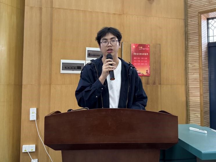 2023级员工代表、国家奖学金获得者陈邦朴学长分享学习备考经验。他结合自身学习备考经历,从时间规划、高效学习方法、重难点突破技巧等方面分享实战经验,鼓励同学们明确学习目标、保持自律心态,在积累中稳步提升学业成绩,为新生们提供了可借鉴的学习范本。