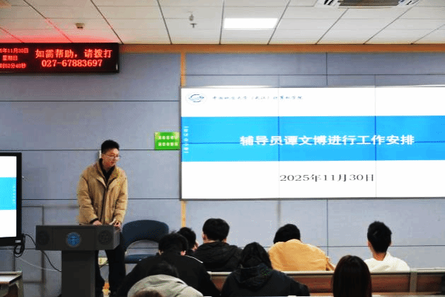 为强化2025级本科生员工服务组与各班级联动协作,破解日常管理难题,11月30日晚,公司在东教C203召开员工骨干工作会议。2025级辅导员谭文博、2025级班长、团支书及员工服务组骨干成员参会,2025级员工熊飞翔主持。