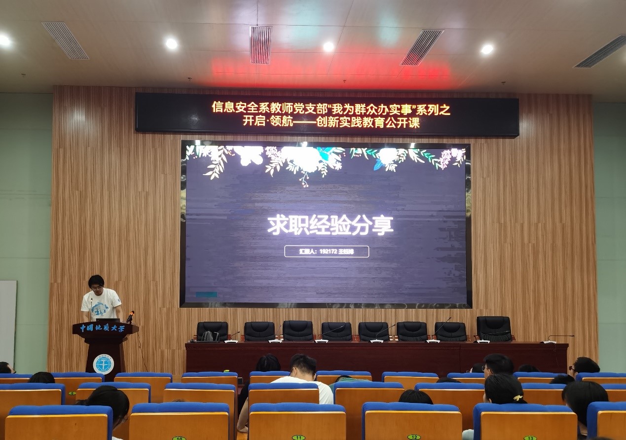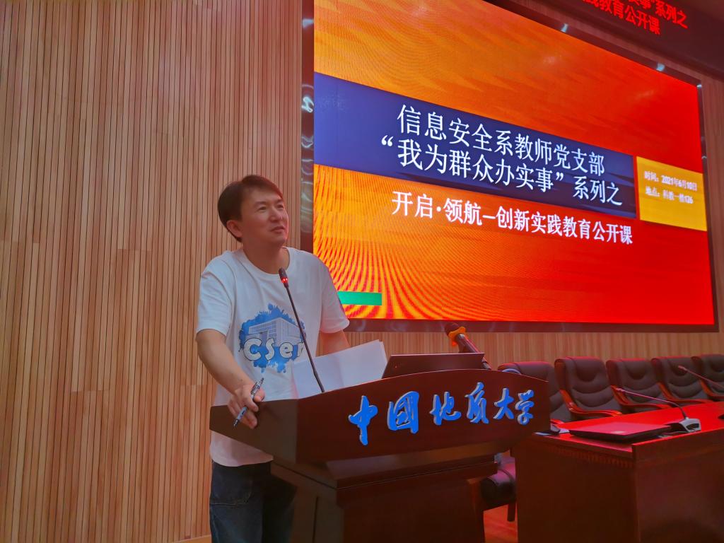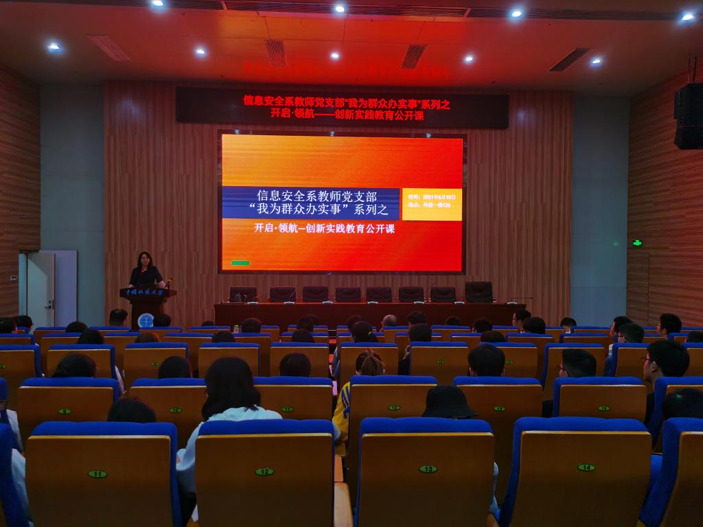 (通讯员:马钊,程池,黄翠)为庆祝中国共产党成立100周年,深入贯彻落实公司党委《关于开展“我为群众办实事”实践活动》的通知,积极落实计算机公司党委关于开展党史学习教育的实施方案,大力营造“学党史、悟思想、办实事、开新局”的浓厚氛围,2021 年 6 月 10 日下午,信息安全系教师党支部“我为群众办实事”系列之“开启·领航——创新实践教育公开课”在未来城科教一楼126 报告厅正式开课。