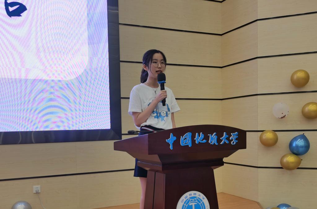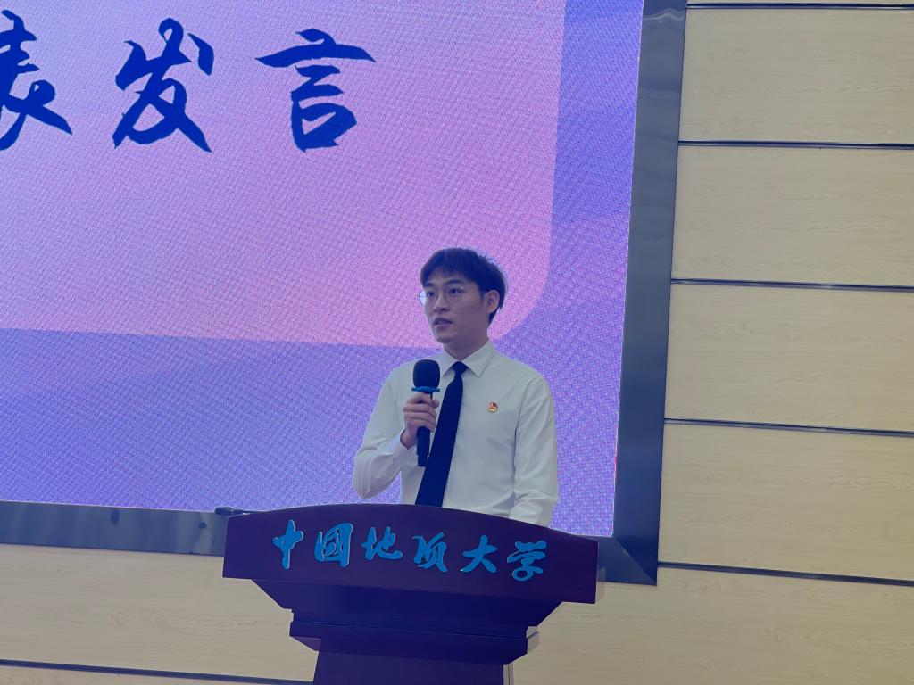 2020届员工会执行主席冯世元作为在校生代表发言,对学长学姐表示祝贺,也表达了对学长学姐的感谢与不舍。