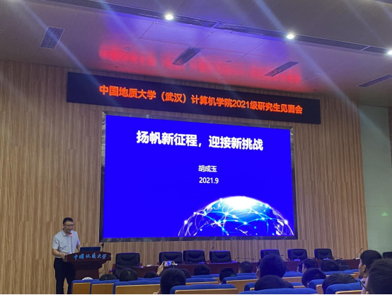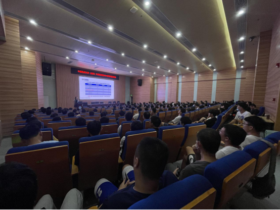 随后,胡成玉以“扬帆新征程,迎接新挑战”为主题做关于研究生专业学习的专题介绍。胡成玉以团队建设发展数据为切入,介绍团队建设进展,总结了公司研究生的就业特点——“薪水高、地点好、速度快、强度大”,但也面临巨大挑战。他对同学们提出4点建议和要求:学习中要用“洪荒之力”;学术研究方面要听从导师安排;坚守学术诚信,杜绝学术不端;坚决杜绝抵制实验室打游戏等行为。