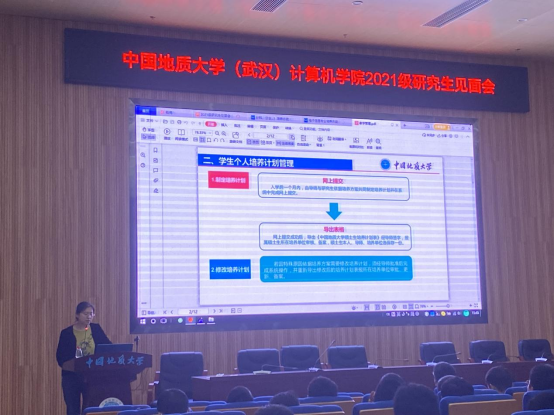 研究生秘书梁媛向同学们介绍公司产品相关要求,解释了学籍注册、教学任务等近期研究生新生应注意的问题。