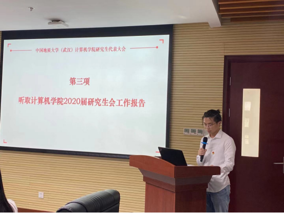 大会第二项,太阳集团tyc539研究生会主席团成员代刚做2020届研究生会工作报告,报告以《不忘初心,砥砺前行》为题,总结回顾了过去一年研究生会在思想引领、科创研学、素质拓展等方面展开的工作和取得的成效。