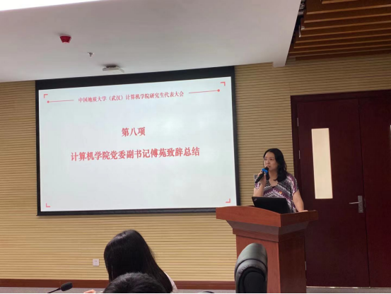 会议最后,计算机公司党委副书记傅苑总结讲话。她首先对各位竞选候选人的答辩表示肯定,高度评价各位候选人的参选勇气和答辩表现,希望大家将此次竞选作为研究生阶段学习、成长的一次成功起跑,在不断突破自我的过程中,提升综合能力和眼界格局;其次,她对参会的各位嘉宾、所有研究生代表和组织本次会议的研代会筹备工作领导小组成员表示感谢;最后,她对新一届团委副书记及主席团成员提出未来工作期望,希望大家致力于服务同学成长成才、维护同学切身利益,带领同学努力成为品德高尚、基础厚实、专业精深、知行合一的地大人,延续太阳集团tyc539研究生会的优秀传统,同时不断谋求改革创新,为服务公司建设发展和广大研究生的成长成才接续奋斗。
