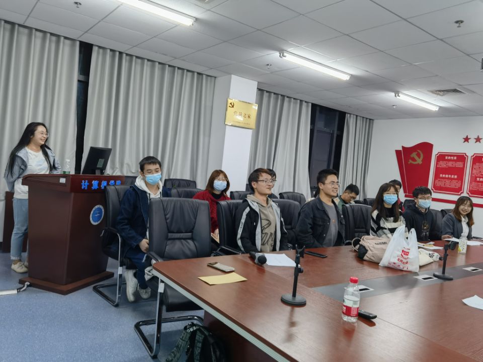 决赛前的彩排让整个队伍倍感压力,其他党支部都带来各具特色的展示,朗诵、话剧表演、作品展等令人目不暇接,队伍的信心一度跌落谷底。但是傅苑老师亲切的鼓励让所有成员重新振作,“大家能够展现用计科专业知识服务社会的、人无我有的特色,就是一次成功的展示”。就这样,队伍自信地站上了决赛的舞台,以饱满的热情和精气神完成了三个环节的比拼。