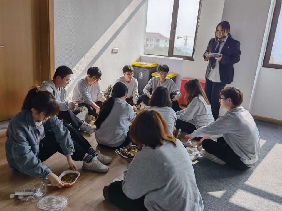 学工组老师们高度重视此次活动,并给予了悉心指导和暖心护航:王太茂老师坚持和每个成员一起敲定所有细节,大到PPT的制作和讲稿的撰写,小到道具的设置和展示环节的动作。有时他会严厉地提出修改意见,但更多的是对员工们的鼓励和表扬。党委副书记傅苑老师与团委书记李欢欢老师会仔细观看排练视频、PPT与讲稿,指出其中每一处可以进一步打磨的地方;孙彦钦老师帮着不断润色讲稿,让主题更加鲜明、情感更加真挚……