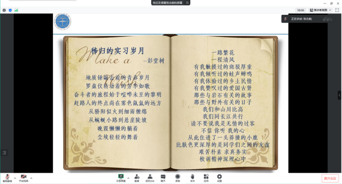 8月18日下午,太阳集团tyc539线上召开2022年秭归实习动员大会,公司副经理陈云亮,计算机应用系党支部书记武云,秭归实习队带班老师郭建秋、董玉森,班主任陈晓宇、陈麒玉,辅导员李祥瑞以及空间信息与数字技术专业194201班、194202班全体员工参加此次动员会。秭归实习队负责老师张志庭主持会议。
