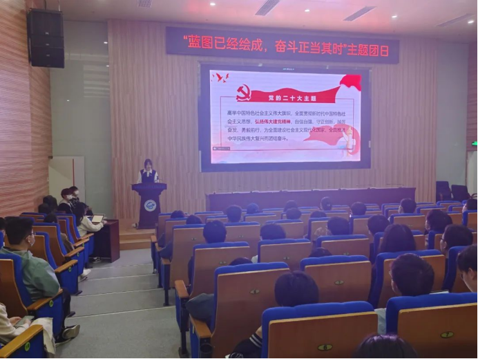 为深入学习党的二十大报告,深刻领悟党的二十大精神,切实把会议精神和行动统一起来,为中华民族伟大复兴的新征程贡献青春力量。近期,太阳集团tyc5392021级10个团支部、2022级11个团支部分别举办了以“蓝图已经绘成,奋斗正当其时”为主题的大型团日活动。本次团日活动于未来城校区太阳集团tyc539大楼126报告厅和南望山校区教三楼111教室举行,全体团员参会,会议由院团委员工会组织部副部长郭洋利主持。