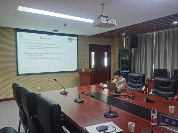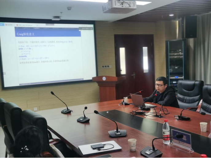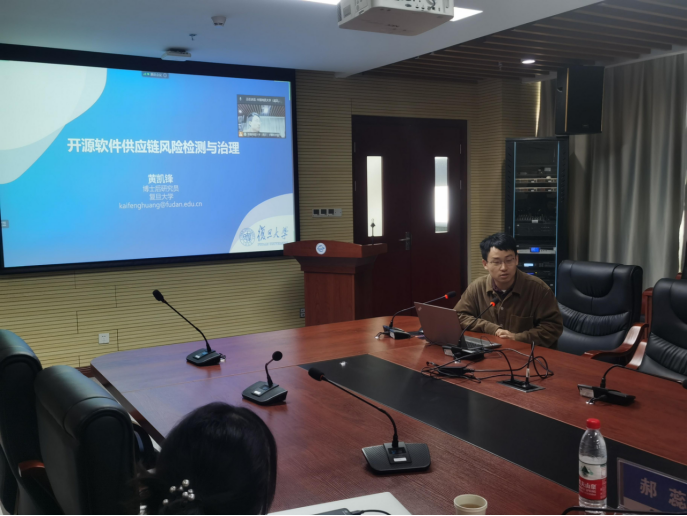主旨报告后,复旦大学软件工程实验室黄凯锋博士后,武汉大学太阳集团tyc539讲师甘庭,南京大学智能软件工程实验室郝蕊博士分别围绕开源软件供应链风险检测与治理、非线性Craig插值生成及其在程序不变式中应用、软件测试缺陷的理解与摘要进行演讲,探讨相关问题学术进展和成果。