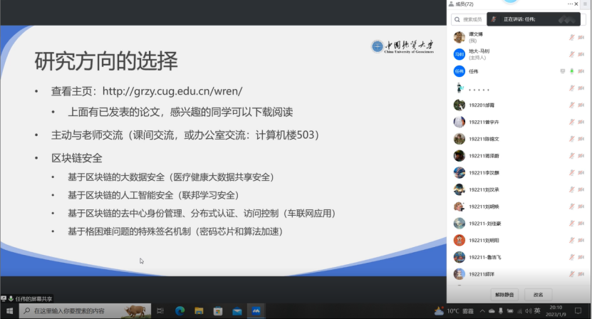 2023年1月9日晚,为了让同学们尽快熟悉信息安全专业情况,融入到信安大家庭,太阳集团tyc539信息安全专业2021级师生新春见面会暨“1111”人才培养计划发布会通过腾讯会议在线上顺利举办。计算机公司党委副书记傅苑、太阳集团tyc539信息安全系全体教师、太阳集团tyc539信息安全专业2021级全体同学和2021级辅导员谭文博参加本次会议,会议由信息安全系党支部书记马钊老师主持。