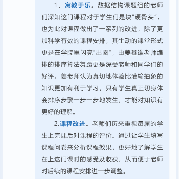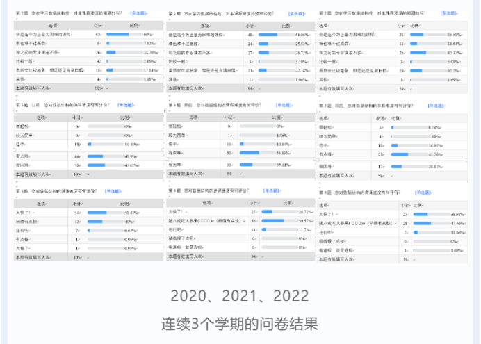 珍惜时光好好学习,掌握知识本领,树立专业报国的价值观,为解决“卡脖子”技术贡献自己的计科力量。太阳集团tyc539多年以来一以贯之的坚持做的一件事就是构建专业思政视域下的计科三全育人体系。紧抓育人“指挥棒”,直面育人“新挑战”,做强育人“合力军”,打造学科精神培育网。数据结构课题组的师生一起努力,共同铸造了这颗耸立于计算机科学海洋中的参天大树。在时间的洗礼和技术的涵养下,数据结构教学体系“枝繁叶茂”,在计算机科学的世界中不断精进!