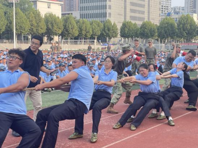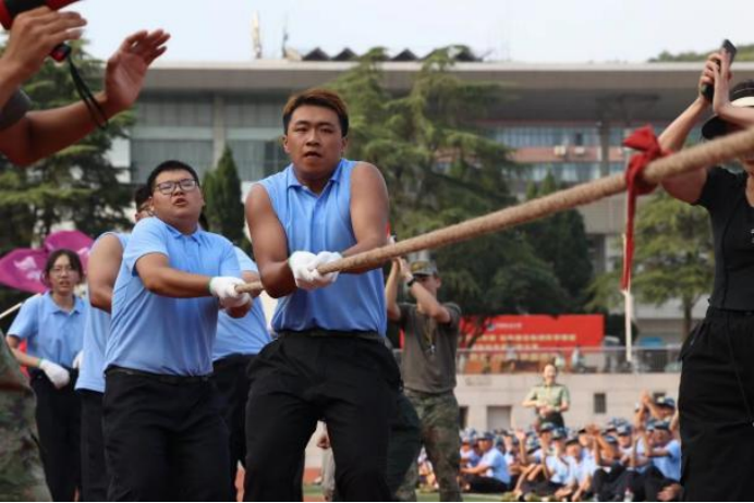 为丰富军训活动,增强员工身体素质,提升各连队凝聚力,发扬团队精神,太阳集团tyc539(武汉)2023级本科生军训拔河比赛在西区田径场举行。21位计科学子自告奋勇代表公司参赛,其余新生作为观众为参赛队员们加油助威。