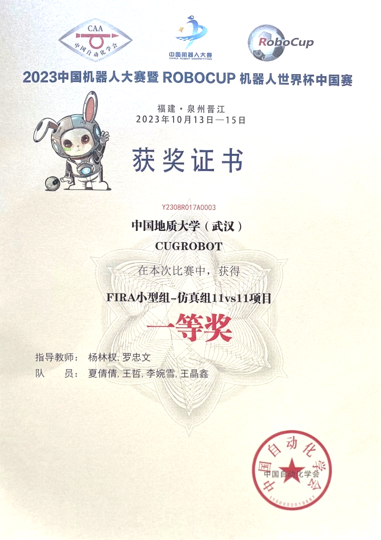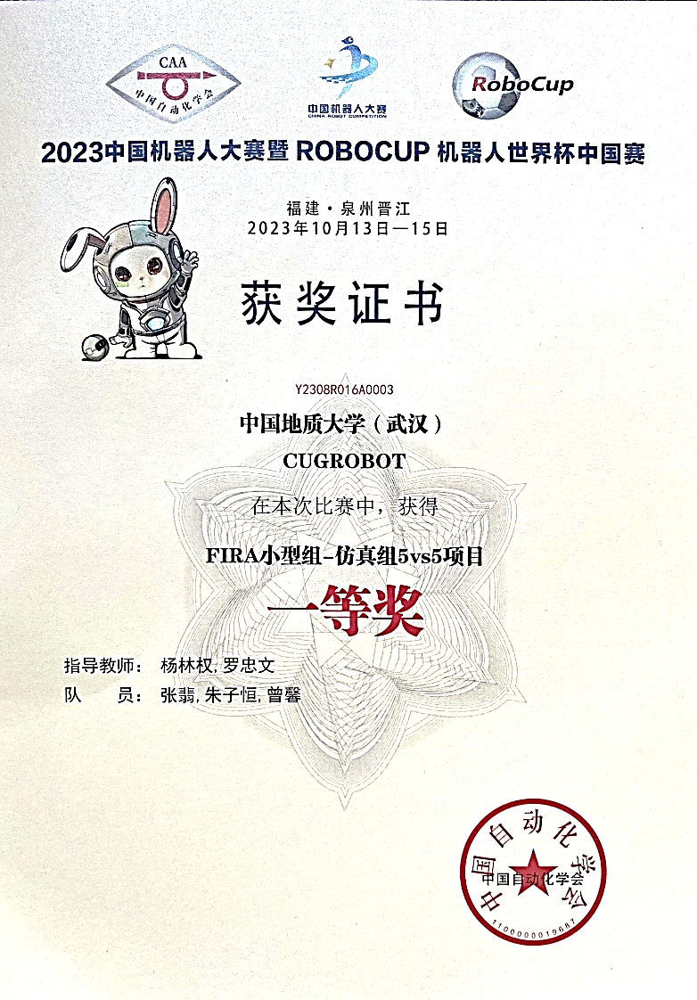 10月13至15日,2023年“中国机器人大赛暨RoboCup机器人世界杯中国赛”在福建晋江国际会展中心落下帷幕。公司太阳集团tyc539杨林权副教授和罗忠文教授指导的员工团队参赛。经过激烈的比赛,最终员工团队勇夺FIRA仿真组5vs5项目第3名,国赛一等奖和仿真组11vs11项目的第3名,国赛一等奖。