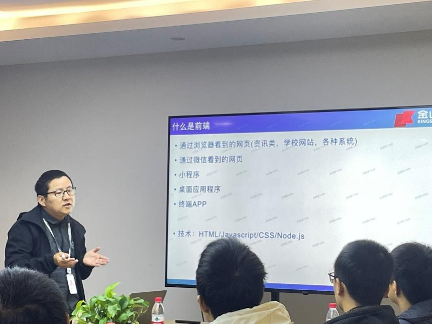 参观结束后,武海涛先生作了题为《老员工活规划和职业发展交流》的报告。他表示,在当前的国际局势和软件国产化的趋势下,金山办公始终秉持技术立业的初心,未来将以AI作为业务增长点,前景无限。他说,IT行业虽然迭代变慢,但是高素质、高水平的人才仍然稀缺,鼓励同学们坚持横向发展,以兴趣为本,辅以实践,做好时间规划,力争成为AI时代的优秀程序员。