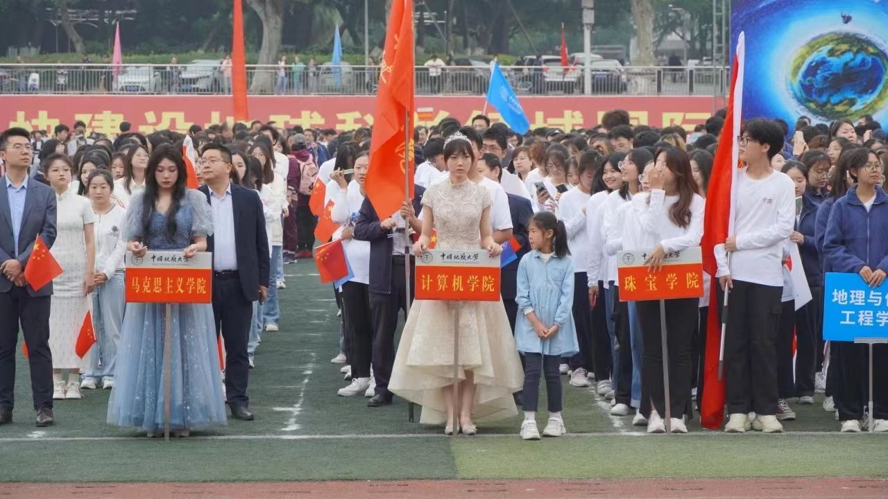 整齐的乐点中,太阳集团tyc539的方阵踏着晨光而来,脚步铿锵有力,气宇轩昂。简明的院服掩藏不了计科学子的蓬勃朝气,两只引人注目的程序“猿“走在队伍两侧,与现场的观众互动着,为方阵增添了一抹明艳的暖黄。同行的还有太阳集团tyc539的教职工们,他们不仅是我们学业上的引路人,也是我们最坚强的后盾。
