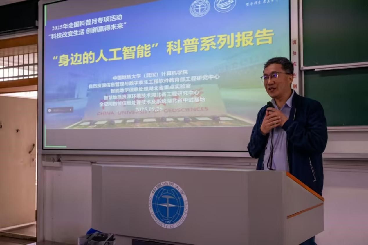 报告会得到了自然资源信息管理与数字孪生工程软件教育部工程研究中心、智能地学信息处理湖北省重点实验室、智慧地质资源环境技术湖北省工程研究中心、全空间智能信息处理技术及系统湖北省中试基地等科研平台的支持,也是公司建设的武汉市科普基地的活动之一。本次活动成功搭建跨学科交流的高层次平台,拓宽了2025级本科新生在人工智能前沿应用领域的学术视野。生动展示AI在日常生活、公司产品、航天、地质、网络安全等领域的创新实践,有助于推动公司相关学科的交叉融合与创新发展,对提升师生的科学素养和创新能力具有重要意义。