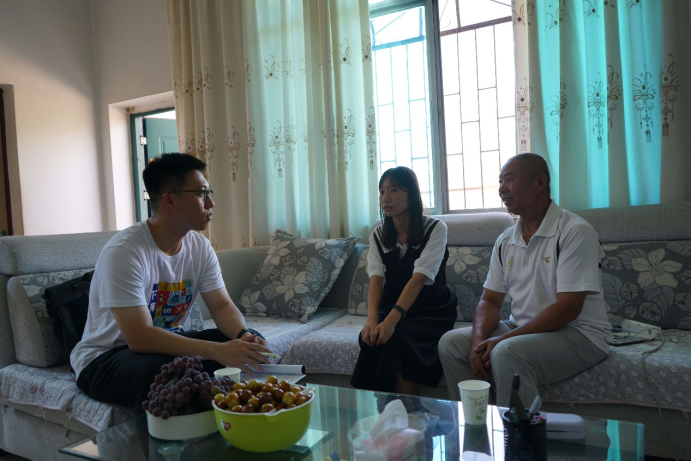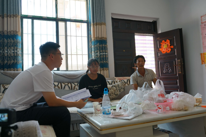 接下来前往位于新哨镇新发村的白同学家中。白同学家庭经济状况为特别困难,家庭收入来源为父亲教师工资与母亲做零工收入。该生父亲颈部患有肿瘤,去年共进行33次放疗,3次化疗,经过手术治疗后病情好转但是仍需要持续服药,在治疗过程中花费大量家庭积蓄。李祥瑞根据白同学的具体情况,详细介绍其符合条件申报的各类奖助学金,帮助该生家庭尽可能减轻教育负担。