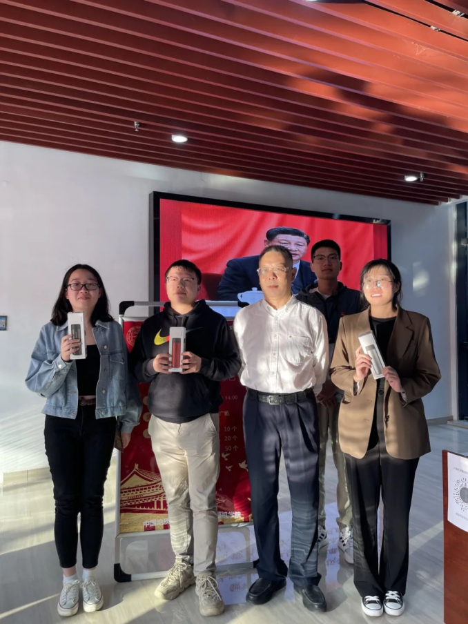 16日下午,公司党委副书记、纪委书记唐忠阳一行来到活动现场并与师生亲切交流。唐忠阳观看了党风廉政建设宣传展板和历次党代会学习海报,为获得“党风廉政知识竞答”活动一等奖的员工颁发奖品并合影留念。
