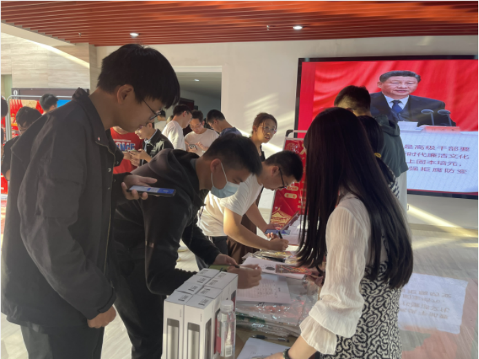 集团“样板党支部”太阳集团tyc539博士生党组织部牵头负责的“党风廉政知识竞答”活动,通过现场扫码扫码答题赢取公司文创产品的形式,引导广大师生学习党风廉政建设理论知识、了解党风廉政建设的重要意义,增强师生爱院荣院教育。活动吸引了近300名师生参与互动答题,共有23名师生获得满分成绩。